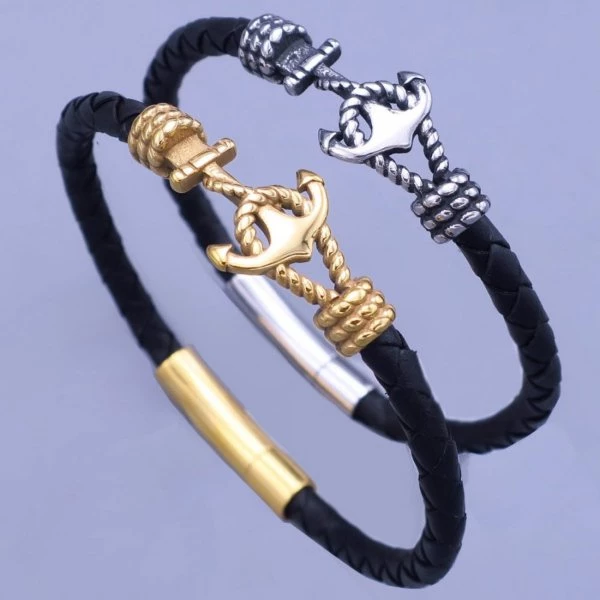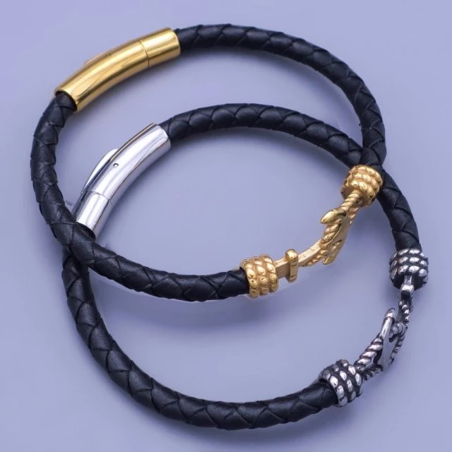 Kožený pánský náramek chirurgická ocel > varianta Zlacený