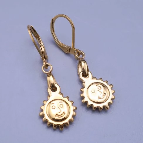 Krásné dámské a dívčí náušnice z pozlacené chirurgické oceli - sluníčka. Náušnice jsou visací s pohodlným zapínáním na klapku (dámský patent). Jsou lehké, v uších netahají a příjemně se nosí. Jsou také skvělým tipem na dárek pro každou dívku a ženu.
