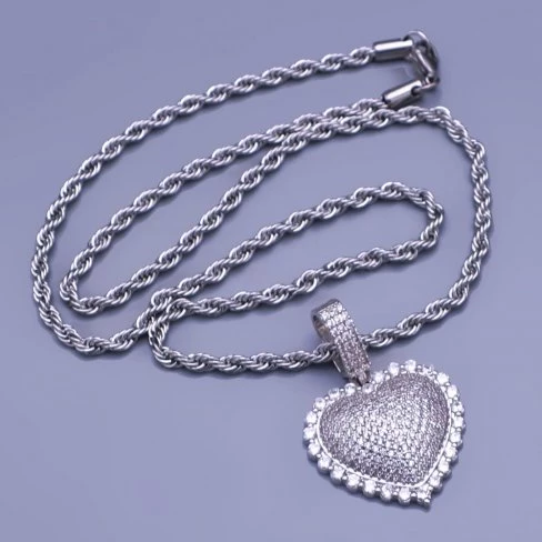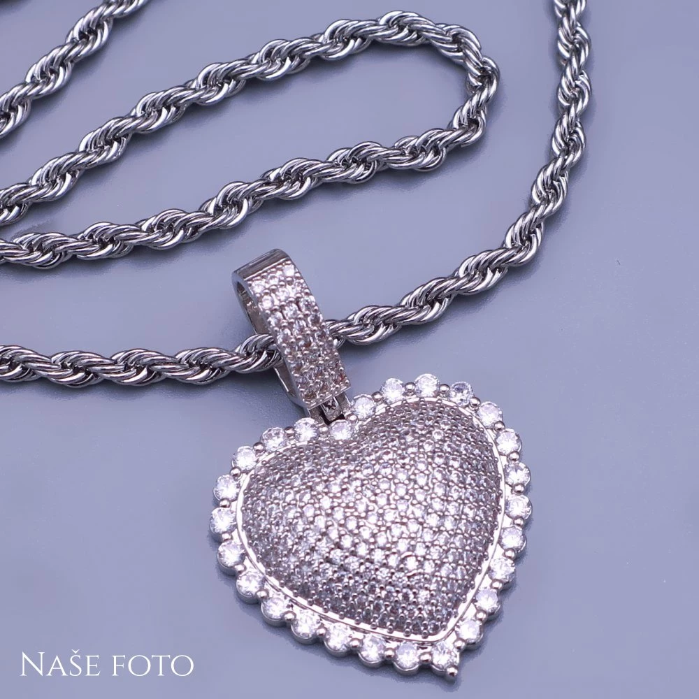 Luxusní přívěsek srdce z leštěné chirurgické oceli je poseto čirými zirkony.