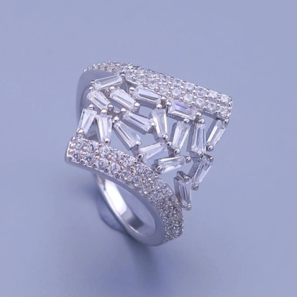 Luxusní stříbrný 925 prsten se zirkony vel. 53,55 a 58 Velikost zdobené části 30x20mm, šířka prstýnku 2mm Dostupný ve velikostech 53,55 Váha prstenu 3,3g (může se lišit v závisloti na velikosti prstýnku) Povrchová úprava rhodiem zabraňuje oxidaci a dává šperku vzhled bílého zlata PS21