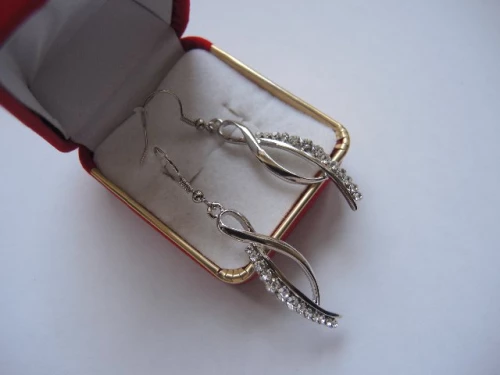 Náušnice na klapce bohatě zdobené Materiál Bezniklový kov Galvanická úprava Stříbrná rhodium Zapínání Klapka Barva kamene čirá ROZMĚR 3,2 x 1 cm