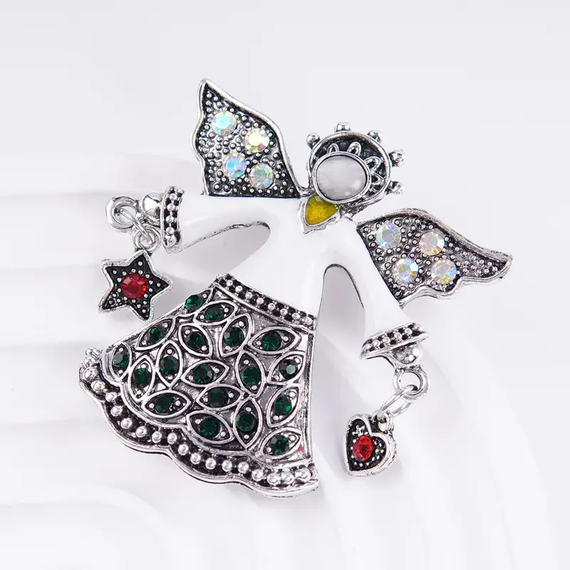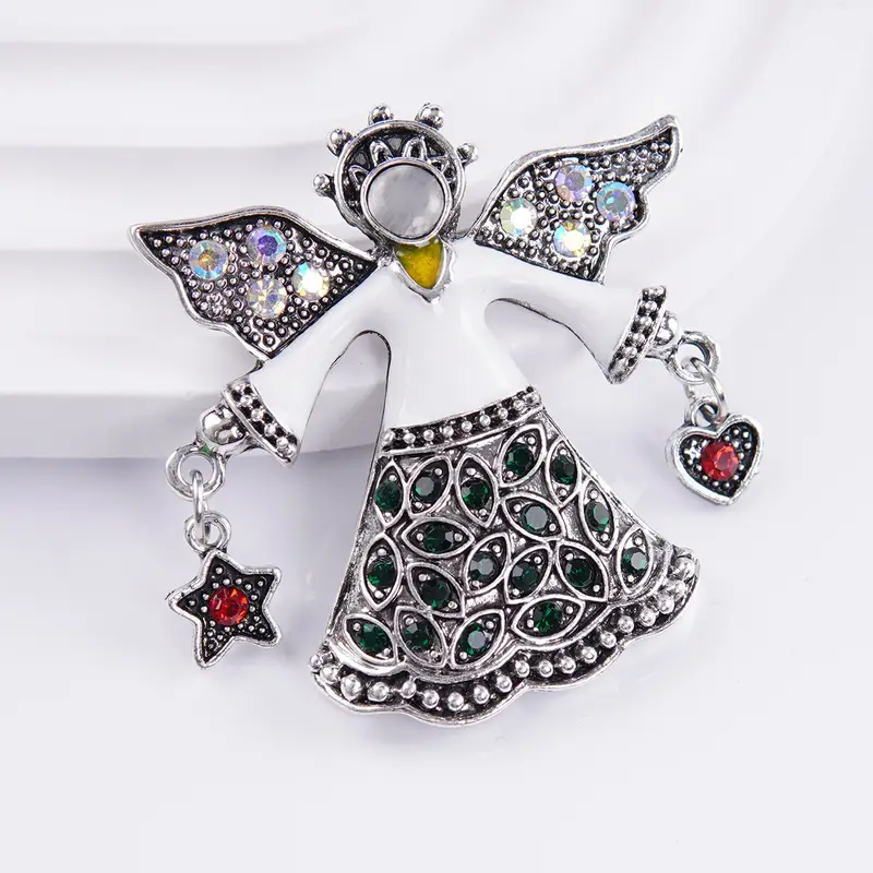 Elegantní andělská Brož zdobená srdíčkem a hvězdičkou s červenými zirkony