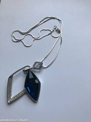 Pravidelný dvojitý kosočtverec stříbrný s modrým kamenem
