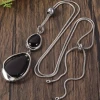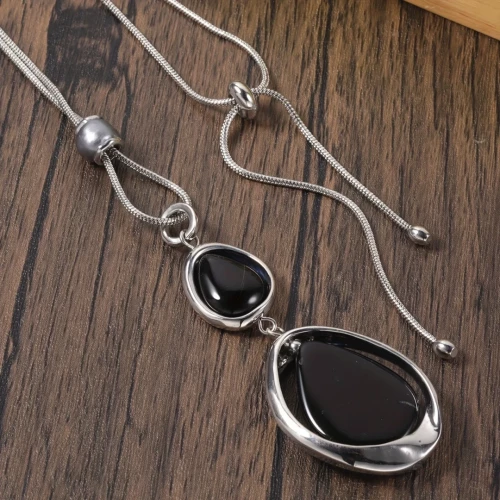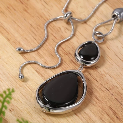Náhrdelník z Černé Zinkové Slitiny s Přívěskem Nepravidelného Geometrického Tvaru z Přírodního Kamene,
