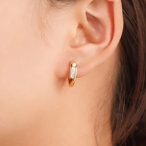 Pár Elegantních Zlatavých Kruhových Náušnic se Zářivými Kubickými Zirkonovými Kameny -! Bez Niklu,