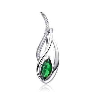 Stříbrná brož dekorovaná zeleným kamenem a drobnými čirými zirkony