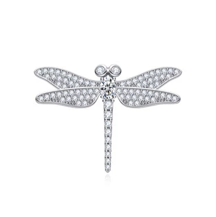 Stříbrná brož ve tvaru vážky dekorované čirými zirkony