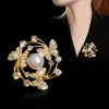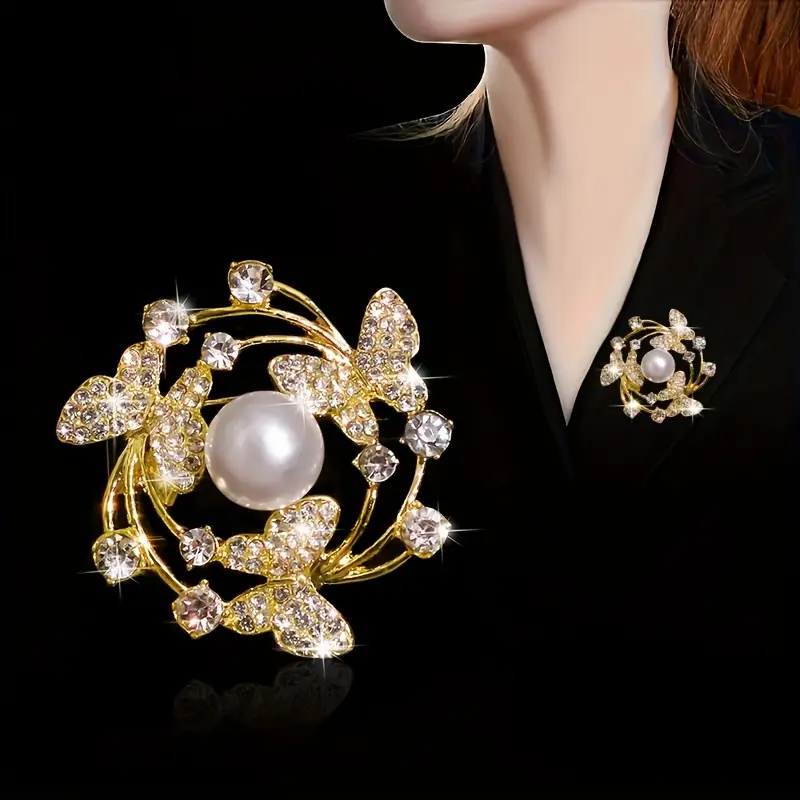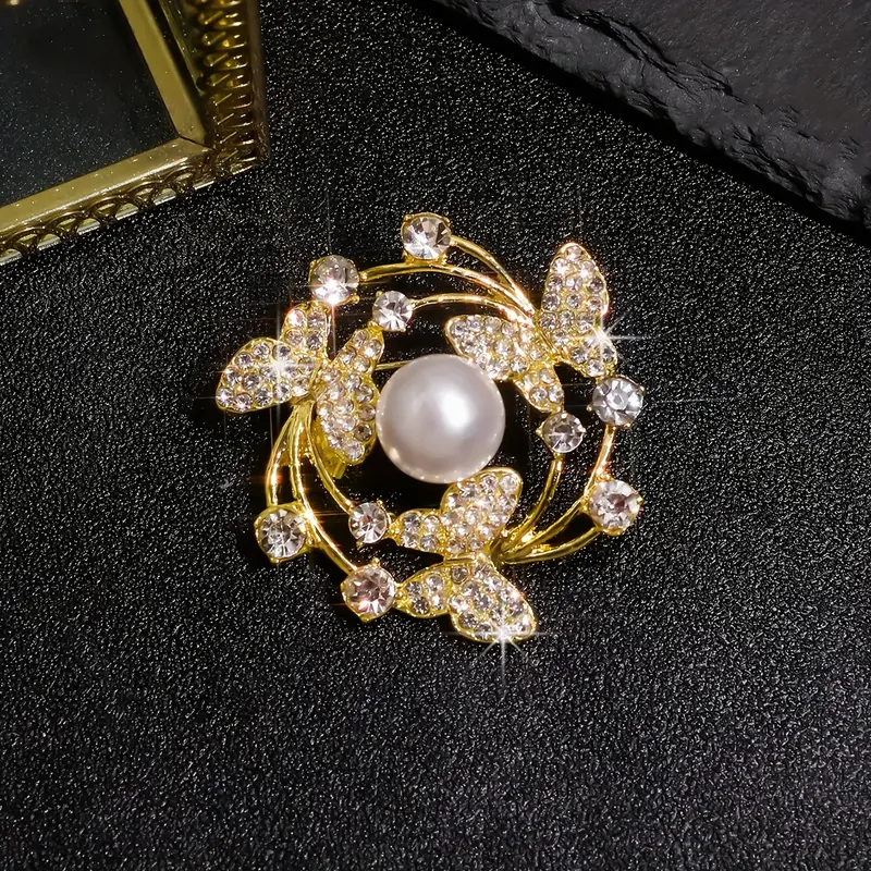 Dámská elegantní Brož s kamínky prostředek zdobí perla v bílé barvě