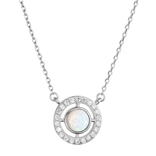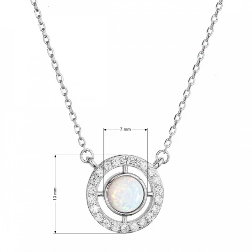 Řetízek je vyroben ze stříbra o ryzosti 925/1000 včetně povrchové úpravy rhodiem. Rhodium ochrání šperk proti zčernání, zežloutnutí i poškrábání. Na řetízku je zavěšen přívěsek ve tvaru koule vyrobený ze syntetického opálu a kolem opálu jsou zasazené zirkony bílé barvy. Náhrdelník neobsahuje nikl, a tak jej bez obav z nepříjemné reakce mohou nosit i alergici.