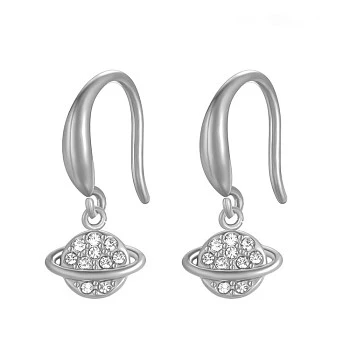 Jemné visací náušnice z chirurgické oceli s bílými skleněnými kamínky.