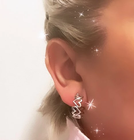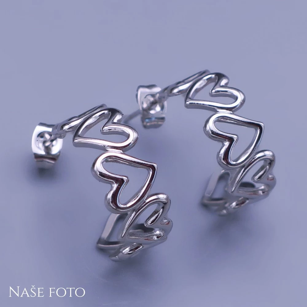 Náušnice z leštěné chiriurgické oceli kruhy, jsou složené ze srdíček.