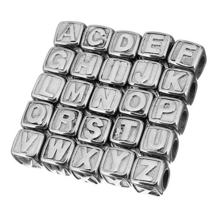 Ocelový korálek kostka s písmenem