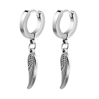 Ocelové náušnice ve tvaru kroužků se zavěšenými peříčky