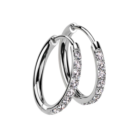 Ocelové náušnice kruhy dekorované kubickými zirkony čiré barvy