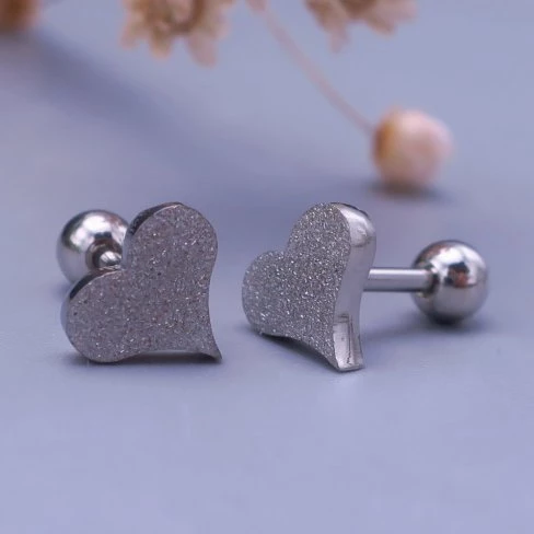 Piercingové náušnice srdíčka, jsou broušené pískováním, které jim dodává třpyt.