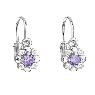 Stříbrné dětské náušnice kytičky, fialové zirkony > varianta Fialkové