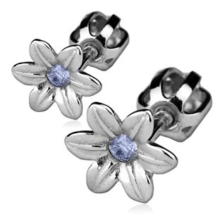 Stříbrné náušnice šroubovací - kytičky, > varianta Světle modrá