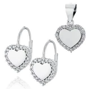 Stříbrná souprava šperků se skládá z náušnic a přívěšku zdobených motivem srdíčka Šperky jsou vyrobeny ze stříbra s jakostním označením 925-1000 s povrchovou úpravou rhodium Rhodium patří mezi drahé kovy, patřící do skupiny platinových, chrání stříbro před černáním a zvyšuje lesk sříbrných šperků. Souprava šperků je dodáváná v papírové dárkové krabičce Parametry materiál stříbro (Ag 925-1000) povrchová úprava rhodium druh kamene zirkon typ uzávěru dámský patent rozměr přívěšku 11 x 16 mm šíře náušnic 10 mm výška náušnic 16 mm hmotnost 3,66 g