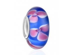 Krásný růžovo modrý skleněný korálek s květy, který ozdobí Váš úžasný šperk!