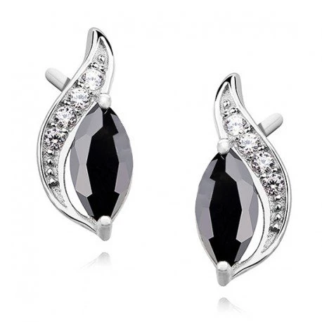 Stříbrné náušnice 925-1000 s černým zirkonem, rhodiované Zapínání na puzetku 11NE1103