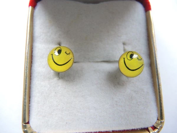 Oblíbené náušnice Smajlíci ve velikosti 9x9mm Zapínání na puzetku.