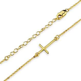 Stříbrný řetízek zdobený křížkem Šperk je vyroben ze stříbra s jakostním označením 925-1000 s povrchovou úpravou v barvě žlutého zlata Parametry materiál stříbro (Ag 925-1000) povrchová úprava žluté zlato rozměr kříže 10 x 22 mm tloušťka řetízku 0,8 mm délka náhrdelníku 40 cm hmotnost 2,0 g