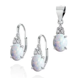 Stříbrná souprava šperků se skládá z náušnic a přívěšku zdobených syntetickými opály Šperky jsou vyrobeny ze stříbra s jakostním označením 925-1000 s povrchovou úpravou rhodium Rhodium patří mezi drahé kovy, patřící do skupiny platinových, chrání stříbro před černáním a zvyšuje lesk sříbrných šperků. Souprava šperků je dodáváná v papírové dárkové krabičce Parametry materiál stříbro (Ag 925-1000) povrchová úprava rhodium druh kamene opál, zirkon typ uzávěru dámský patent šíře náušnic 6 mm výška náušnic 16 mm výška přívěšku 20 mm hmotnost 3,52 g