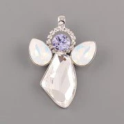 Anděl má svatozář vykládanou bílými kamínky Swarovski Elements. Výška přívěsku 45mm, šířka 33mm. Materiál Rhodium