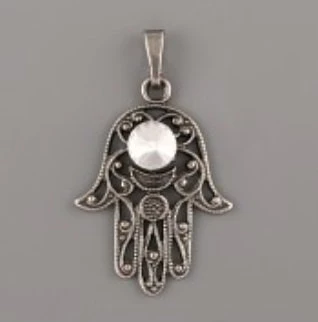 Tato ručka je nejen krásný doplněk, ale je to i amulet, který Vás ochrání prý hlavně před uhranutím. Cena za kus bez Rivoli Swarovski Elements. Délka 35mm, šířka 21mm. Velikost kamene Swarovski 6mm Materiál bižuterní kov