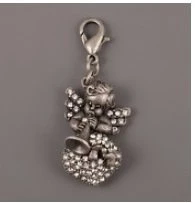 Krásný přívěsek s karabinkou ANDĚL SEDÍCÍ NA SRDÍČKU S TRUMPETKOU VYKLÁDANÝ KRYSTALY SWAROVSKI ELEMENTS. Ideální jako přívěsek na mobil, klíče či na kabelku. Prvotřídní kvalita. Velikost - délka vč. karabinky 45mm, šířka 20mm. Materiál bižuterní kov,starostříbro