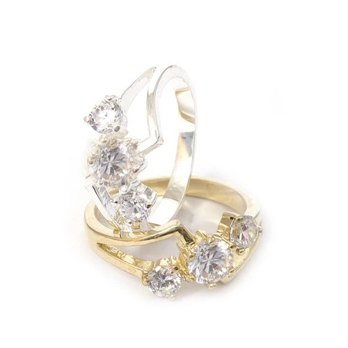 Nádherný zářivý prstýnek se 3 kameny, průměr prostředního kamene je 5 mm. Povrchová úprava: postříbřený Velikosti: 49