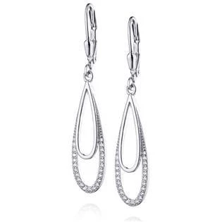 Dámské visací stříbrné náušnice vyrobenmé ze stříbrac s jakostním označením 925-1000 povrchově upravené rhodiováním Rhodium patří mezi drahé kovy, patřící do skupiny platinových a chrání stříbro před černáním, zvyšuje lesk náušnic Náušnice jsou dodávány v krásné dárkové krabičce Parametry materiál stříbro (Ag 925-1000) povrchová úprava rhodium druh kamene zirkon typ uzávěru dámský patent šíře náušnic 8 mm výška náušnic 41 mm hmotnost 2,57 g