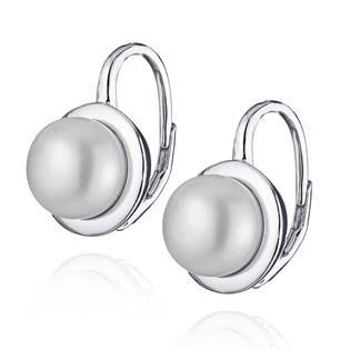 Dámské perlové náušnice ze stříbra s jakostním označením 925-1000 povrchově upravené rhodiováním Rhodium patří mezi drahé kovy, patřící do skupiny platinových a chrání stříbro před černáním, zvyšuje lesk náušnic Náušnice jsou dodávány v krásné dárkové krabičce Parametry materiál stříbro (Ag 925-1000) povrchová úprava rhodium druh kamene zirkon typ uzávěru dámský patent barva perly bílá druh perly kultivovaná říční rozměr perly 9 mm šíře náušnic 12 mm výška náušnic 17 mm hmotnost 5,43 g