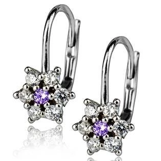 Stříbrné náušnice - kytičky se zirkony > varianta Fialová