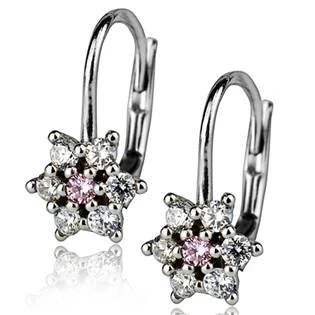 Stříbrné náušnice - kytičky se zirkony > varianta Růžová