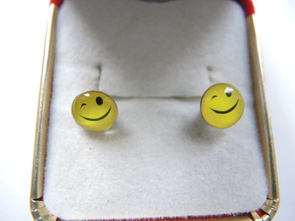 Oblíbené náušnice Smajlíci ve velikosti 9x9mm Zapínání na puzetku.