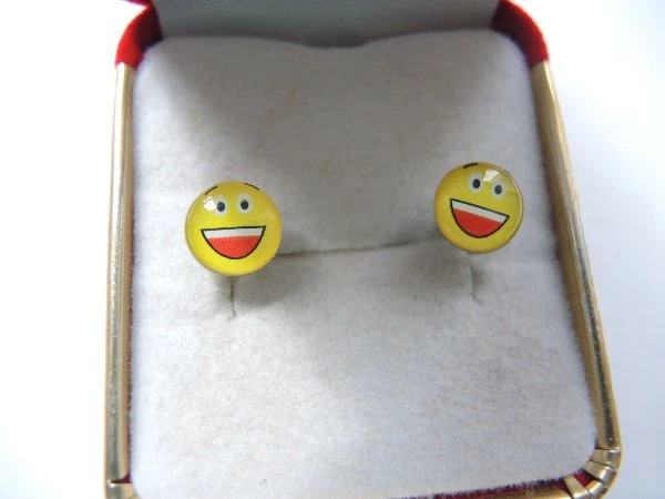 Oblíbené náušnice Smajlíci ve velikosti 9x9mm Zapínání na puzetku.