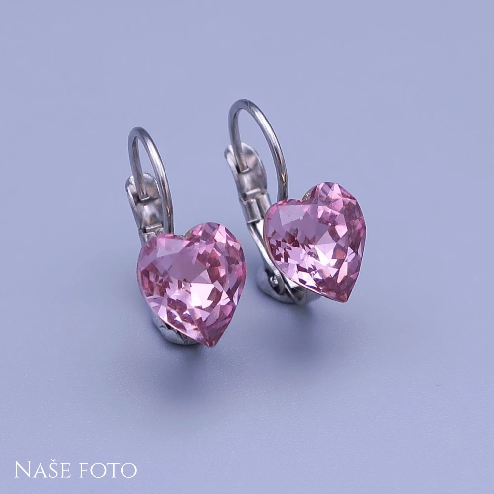 Dětské náušnice z chirurgické oceli s pohodlným zapínáním na klapku zdobí srdíčka Swarovski o velikosti 8mm. Light Amethyst ( světlá fialová ) Náušničky jsou vhodné od 4 let. Celková délka náušnic se zapínáním 16mm S102