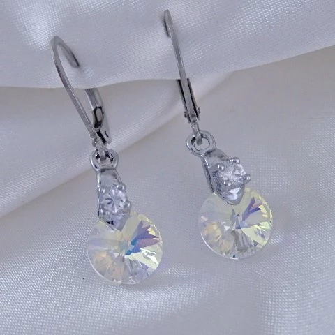 Jemné dětské náušnice z chirurgické oceli zdobí kolečka Swarovski 8mm . Zapínání z chirurgické oceli na klapku zdobené zirkonem crystal (čirá ) , které je pohodlné pro nošení . Celková délka náušnic se zapínáním : 25mm Na výber z barev : Crystal AB ( měnící ) , Bermuda Blue ( měnící modrá ), Light Siam ( červená) , Silver Night (šedočerná) Náušničky jsou vhodné pro děti od 3let Chirurgická ocel je vhodná pro alergiky na běžné kovy . V případě zájmu upřesněte barvu