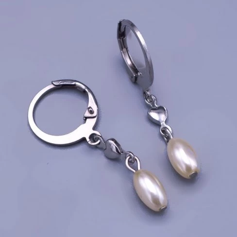 Náušničky zdobí srdíčko 3mm a perlička o velikosti 4x7mm.