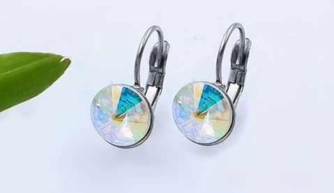 Náušnice ocelpvé ss skleněným kamínkem v duhové barvě se za pínáním na klapku.