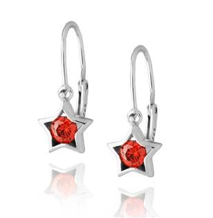 Dětské stříbrné náušnice hvězdičky s červeným zirkonem