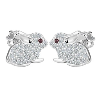 Dětské náušnice ve tvaru králíků zdobených čirými zirkony.