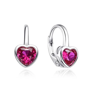 Náušnice ze stříbra s jakostním označením 925/1000 povrchově upravené rhodiováním. Náušnice jsou dekorovány tmavě růžovými zirkony ve tvaru srdíček.