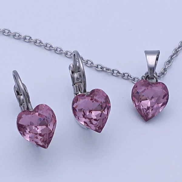 Dětská souprava z chirurgické oceli se skládá ze srdíček Swarovski o velikosti 8mm s výrazným brusem. Barva light amethyst ( světlá fialová ). Náušnicové zapínání je z chirurgické oceli s pohodlným zapínáním na klapku. Celková délka náušnic se zapínáním 17mm. Přívěsek srdíčko je zavěšeno na řetízku z chirurgické oceli o šířce 2mm. Délka na výběr od 40-45-50-55-60cm Souprava je vhodná pro děti od 6 let. Souprava je uložená v krabičce. S77