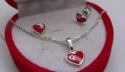 Krásná souprava pro malé parádnice náušničky a přívěsek ve tvaru srdíčka s bílým kamínkem . POZOR: Náušničky mají na rozdíl od obrázku zapínání na puzetku. Protialergenní zapínání. Dvouletá záruka