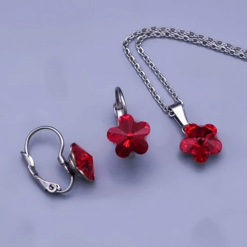 Souprava z chirurgické oceli Swarovski kytičky v barvě light siam ( červená ).