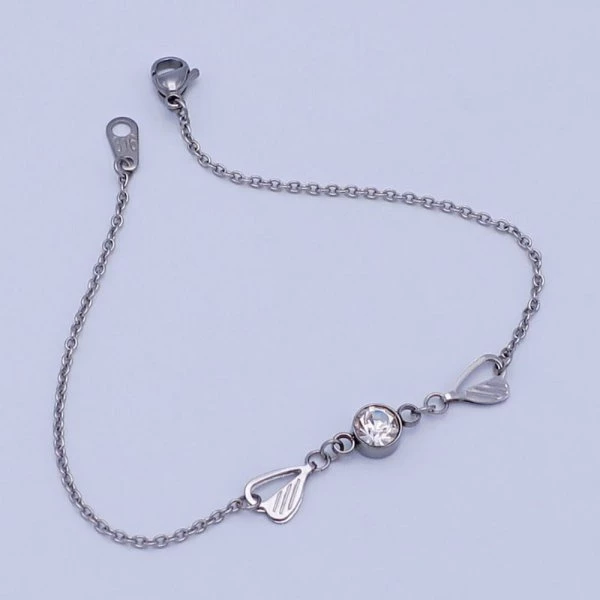 Jemný náramek z leštěné chirurgické oceli se skládá z řetízku 1.2mm, Který zdobí čirý zirkon 10mm a srdíčka 6mm. Délka na výběr od 12-13-15-16-17-18-19cm Náramek je vhodný pro děti ale také pro ženy, keré mají v oblibě jemné šperky. Chirurgická ocel je vhodná pro alergiky na běžné kovy. 1237