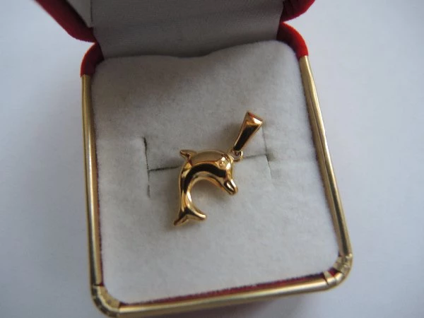 Zlacený přívěsek delfínka vhodný pro děti z chirurické oceli Rozměry i se závěsem 25mmx10mm 7PP20441