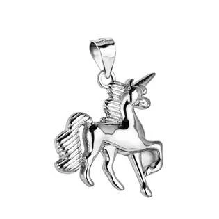 Stříbrný přívěšek v podobě jednorožce Přívěšek je vyroben ze stříbra s jakostním označením 925-1000 s povrchovou úpravou rhodium Rhodium patří mezi drahé kovy, patřící do skupiny platinových, chrání stříbro před černáním a zvyšuje lesk sříbrných šperků. Přívěšek je dodáván v papírové dárkové krabičce Parametry materiál stříbro (Ag 925-1000) povrchová úprava rhodium rozměr přívěšku 17,5 x 18 mm celková výška přívěšku 25 mm hmotnost 2,12 g